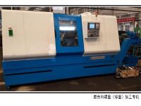 本機床用于汽車差速器殼體內腔平面及球面的加工。機床為臥式雙面布置,左端為DSS精鏜頭和液壓滑臺組成,右端為DSS精鏜頭(從動軸,無動力)和液壓及液壓滑臺組成。中間為夾具,夾具安裝在專用數控移動工作臺上,用于锪面進給。后方為雙位送刀機械手,上件后送刀機械手送粗加工刀進去,動力頭頂緊刀具機械手退回,數控工作臺左右工進,完成粗锪面工序。刀具回位后,機械手將粗锪刀取走,另一機械手送精锪刀進入工件,重復上次循環(huán),完成精加工。一次裝夾一個工件。可通過更換、調整定位夾緊元件,實現多品種的互換加工。